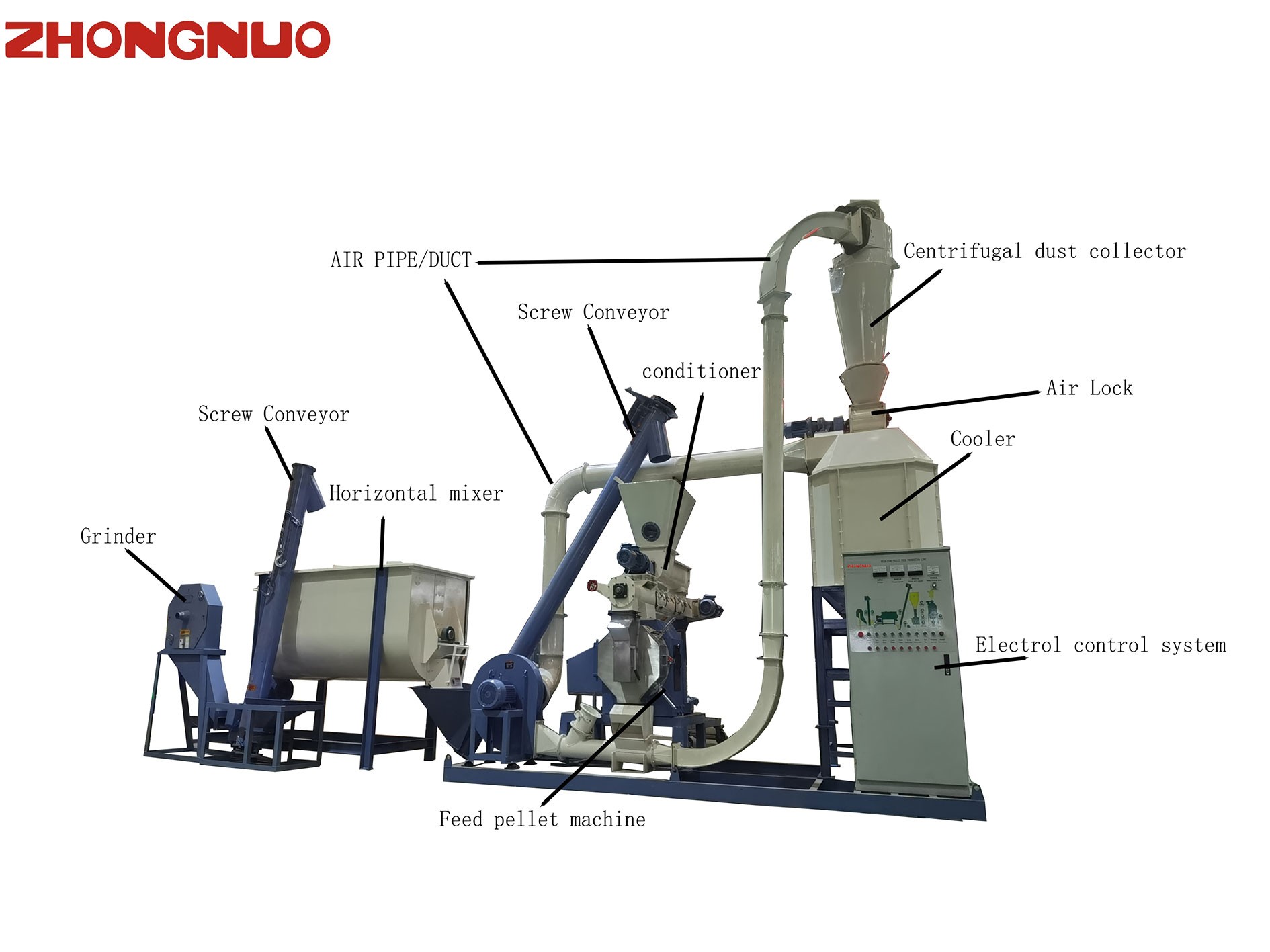 This Feed Production Line plays for feed industry to produce pellet or powder feed forlivestock , poultry, and aqua .  We are manufacturing animal feed making machine, for example, Chicken feed making machine, pig feed making machine, cattle feed making machine, fish feed making machine, poultry feed making machine for exportation.  It's widely used in animal husbandry and aquaculture, medium farms, feed mills, chickens, ducks, fish, rabbit, cow, sheep, pigs, dogs, birds, etc.,