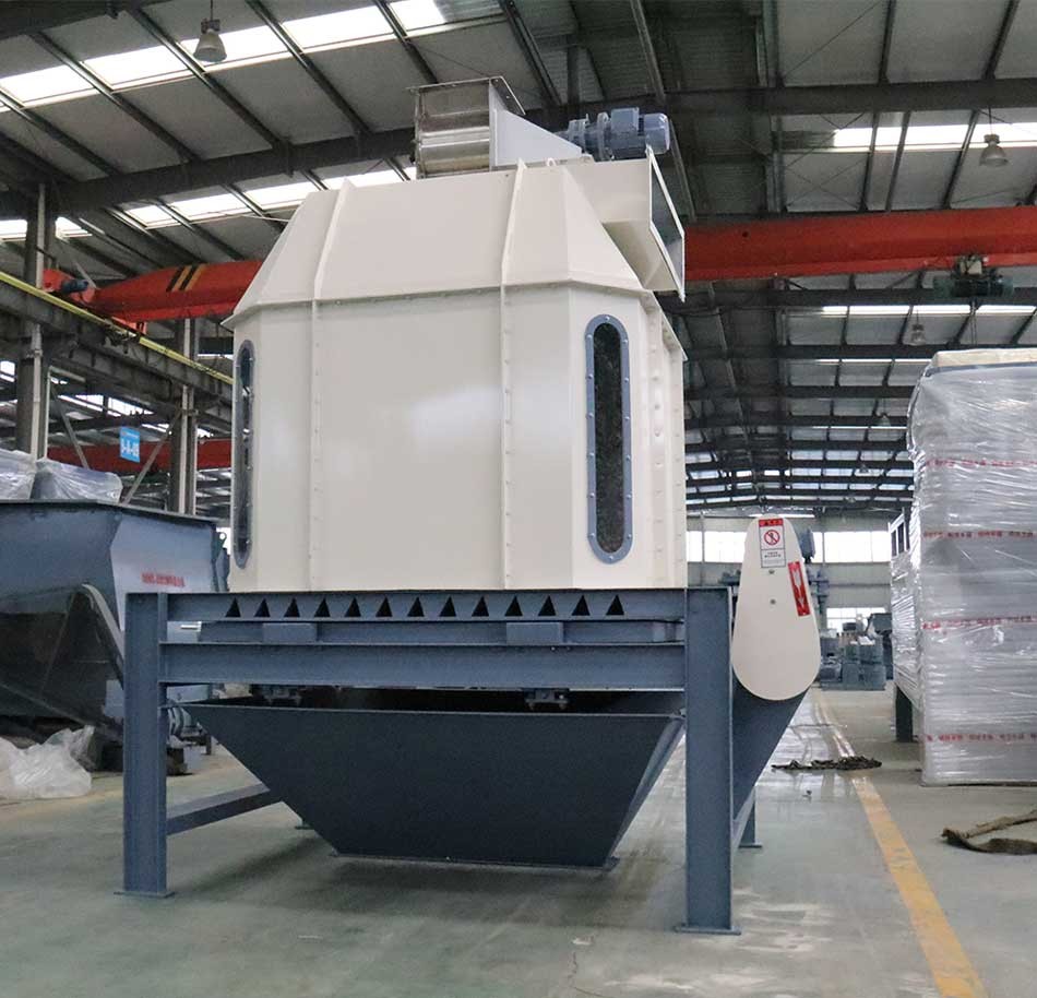 Feed Counter-Flow Cooler adopts the principle of counterflow cooling, the pellets are cooled and evenly distributed; the unique sliding valve type discharging mechanism is used for discharging; the sliding valve type discharging mechanism is stable and reliable, and the discharging is smooth; the temperature of the pellet after cooling is not higher than room temperature. +3-5 degrees. An access door is provided on the front of the unit for convenient daily maintenance and overhaul. An observation window is provided on the side for easy observation of the thickness of the material layer in the chamber.