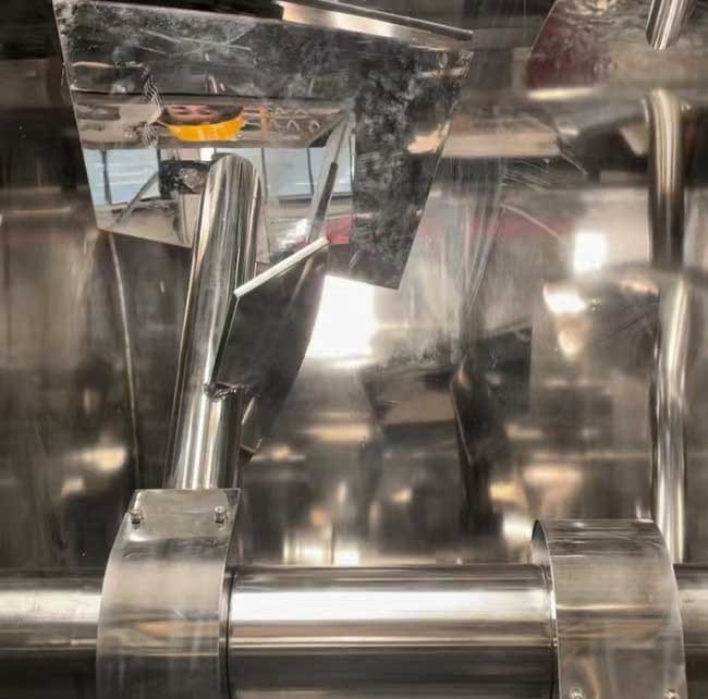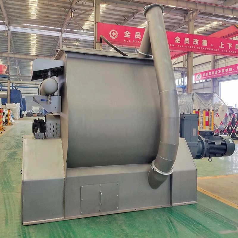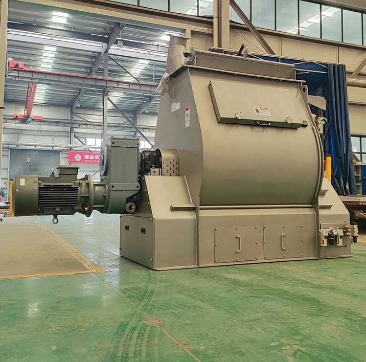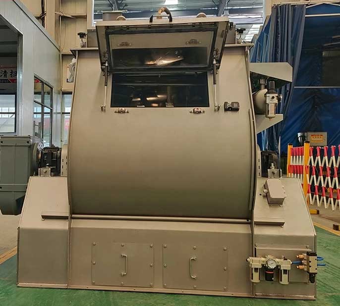 The main drive of the single roller mixer adopts double reducer to drive, which is more flat; the liquid(such as water, molasses, oil, etc) is added under a certain positive air condition, which is more accurate and uniform. It adopts pneumatic discharge mechanism with self-locking function, discharge door sealing with silica rubber, no leakage. large access door, reasonable design, convenient for cleaning and maintenance. The limit switch in the access door can ensure safety operation. Single roller double paddle mixer, mixing time 45-60s. High evenness, mixed evenness is more than 97.7%. Wide open discharge door, residual less than 0.1%. Energy saving machine, tons of power consumption is only 0.3W.